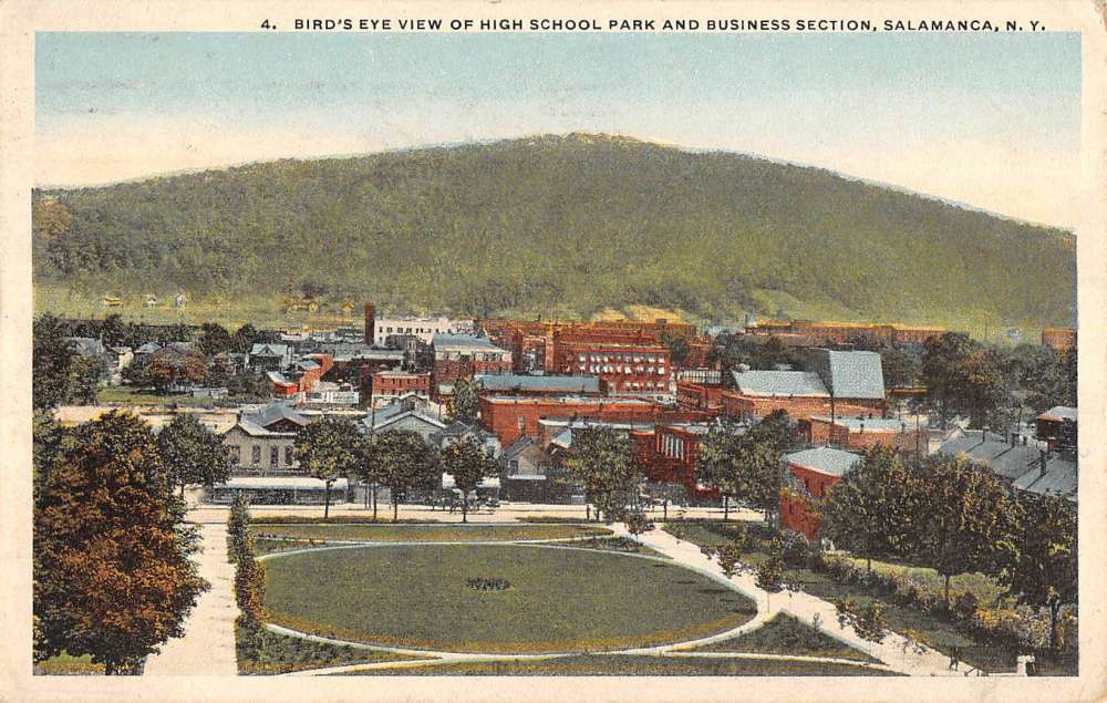 Salamanca New York Birdseye View Of City Highschool Park Antique Postcard K63963