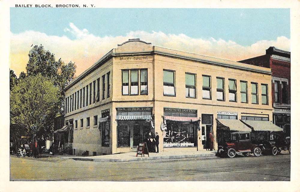 Brocton New York Bailey Block Street View Antique Postcard K63998