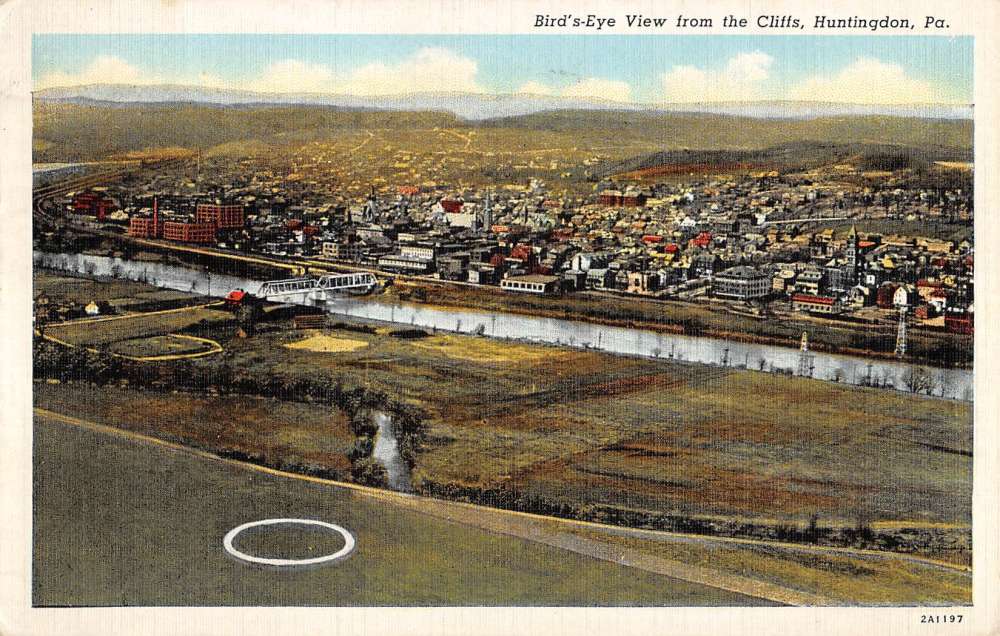 Huntingdon Pennsylvania Birdseye View Of City Antique Postcard K64519