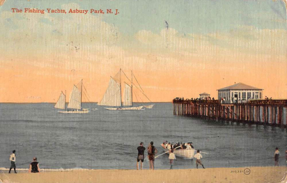 Asbury Park New Jersey Fishing Yachts Waterfront Antique Postcard K61733