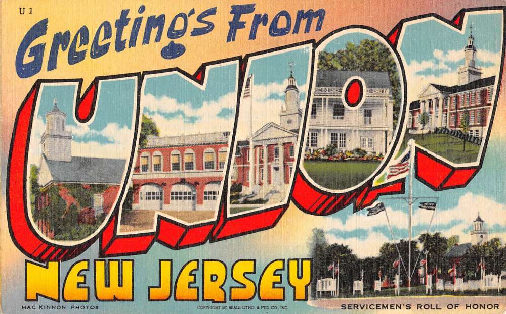 Union New Jersey Large Letter Linen Antique Postcard K61314