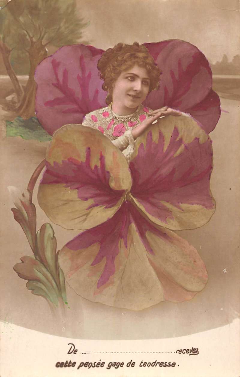 Pansy Flower Fantasy Woman Tinted Real Photo Antique Postcard K61318