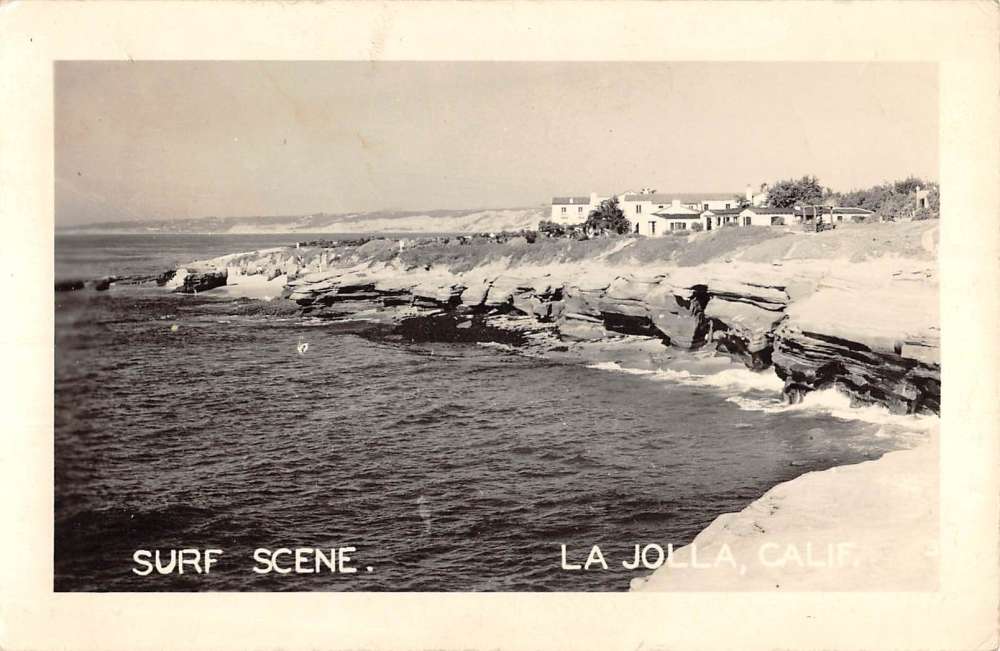 La Jolla California Surf Scene Real Photo Antique Postcard K61627