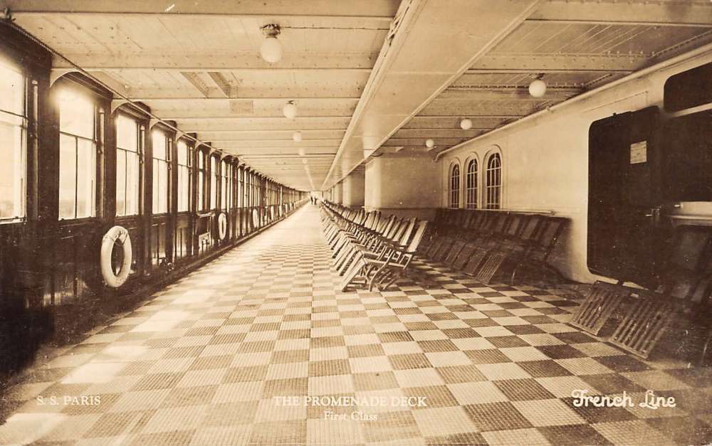 SS Paris French Line Promenade Deck Real Photo Antique Postcard K61631