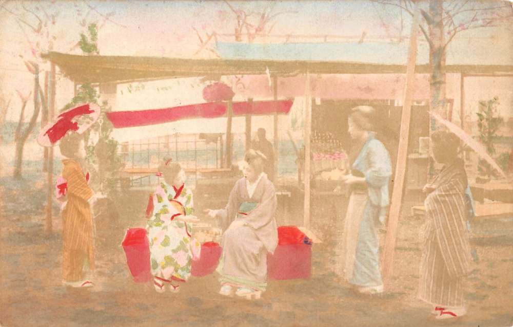 Japan Native Women Kimono Market Tinted Real Photo Antique Postcard K61647