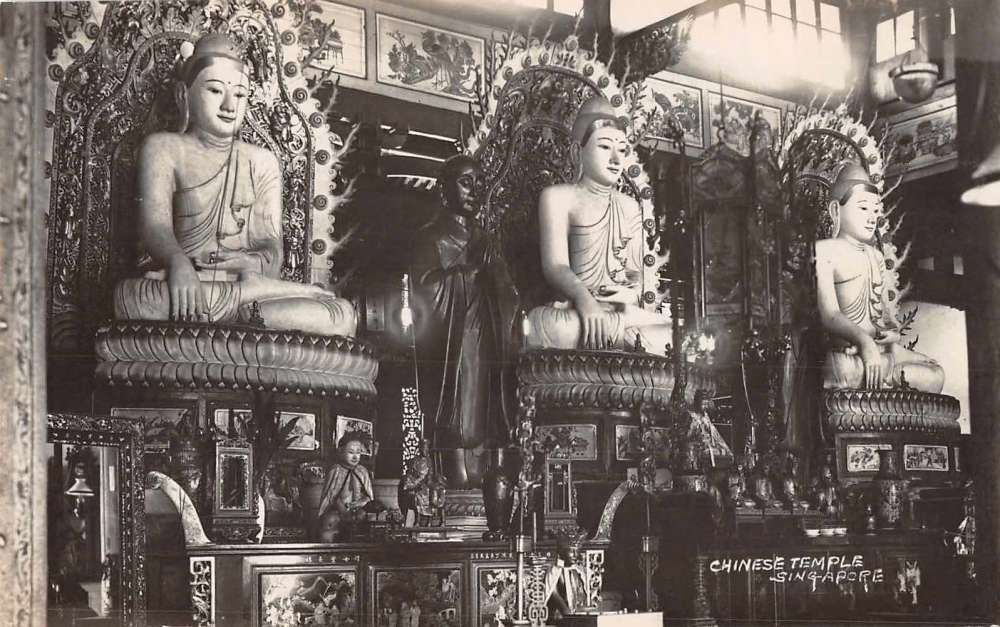 Singapore Chinese Temple Interior Real Photo Antique Postcard J65421