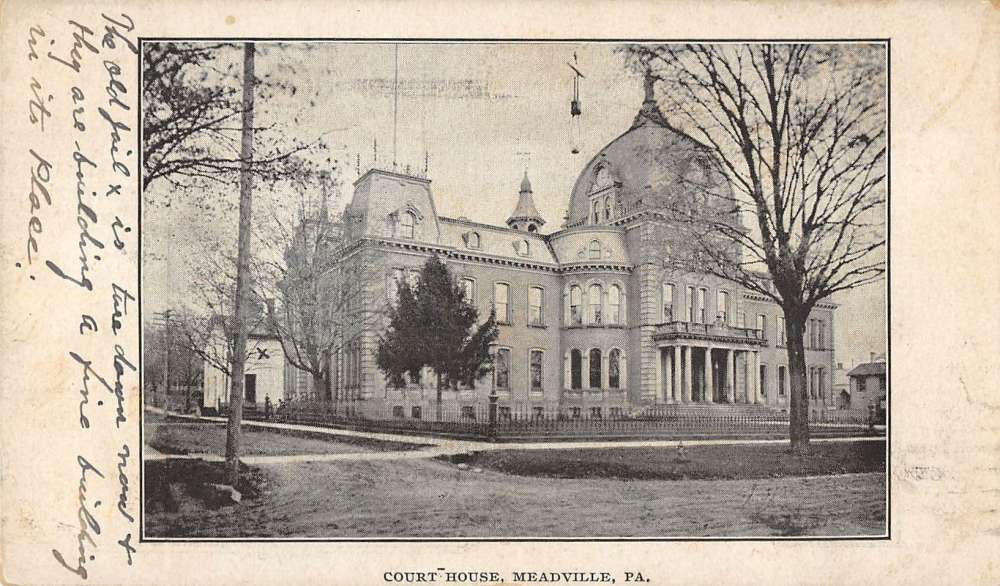 Meadville Pennsylvania Court House Street View Antique Postcard K60936