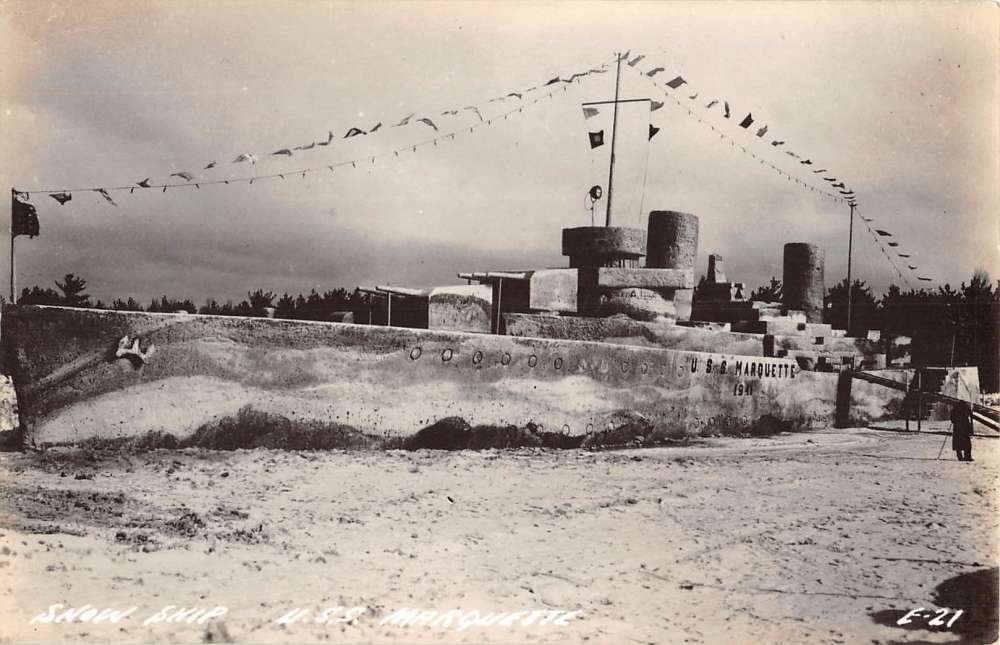 USS Marquette Beached Ship Snow Scene Real Photo Antique Postcard K60955