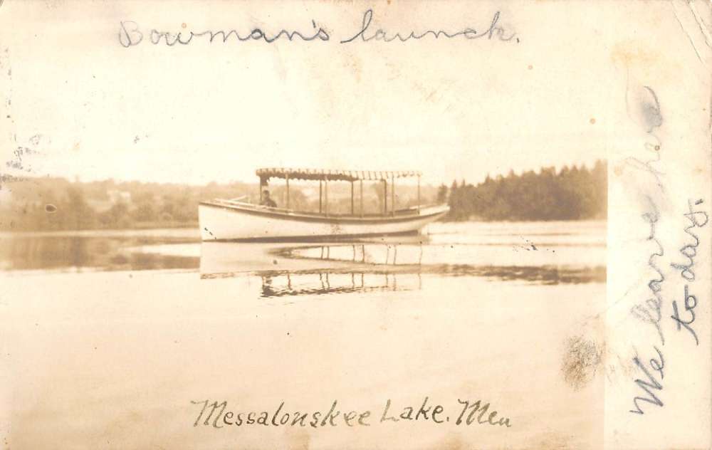 Messalonskee Lake Maine River Boat Real Photo Antique Postcard K60082