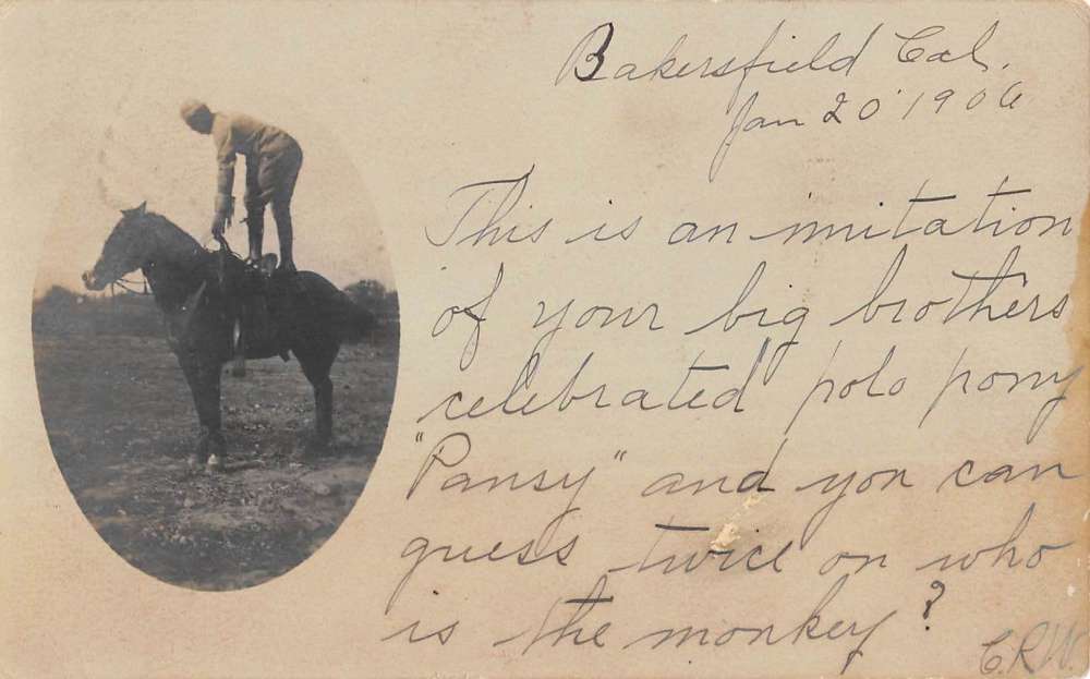 Bakersfield California Jockey Standing On Horse Real Photo Postcard K60084