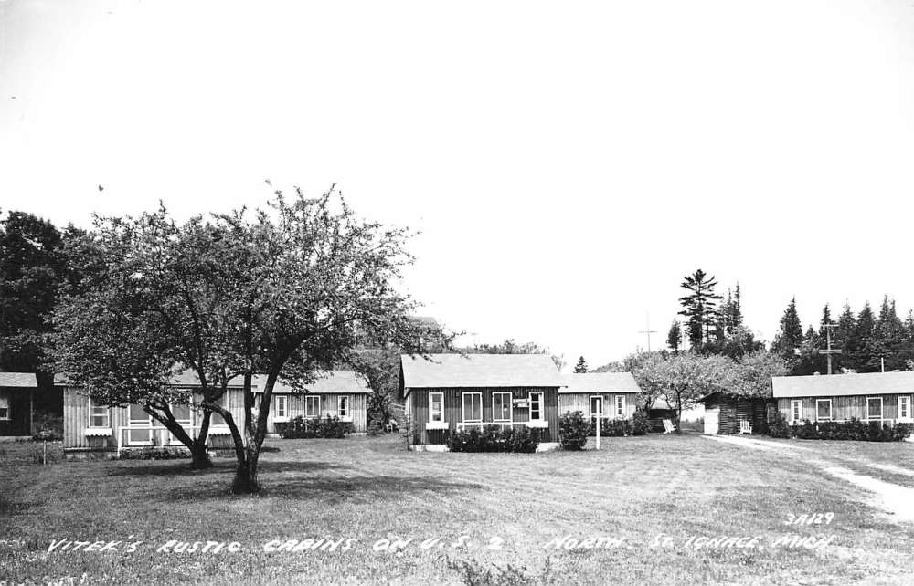 St Ignace Michigan Viteks Rustic Cabins Real Photo Antique Postcard K59674