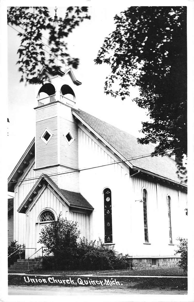 Quincy Michigan Union Church Real Photo Antique Postcard K59680