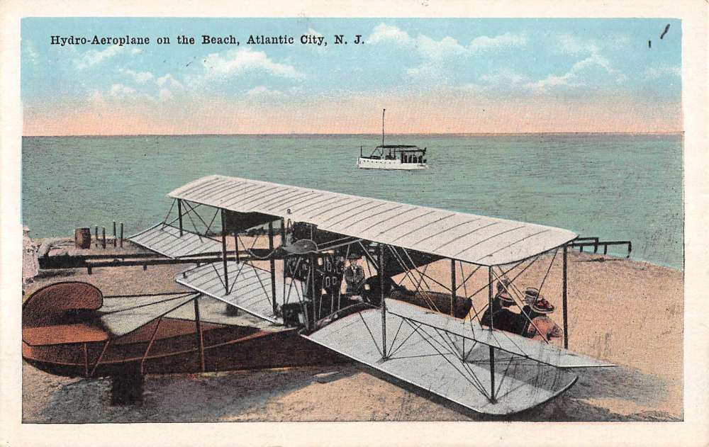 Atlantic City New Jersey Hydro Aeroplane On Beach Antique Postcard K59907