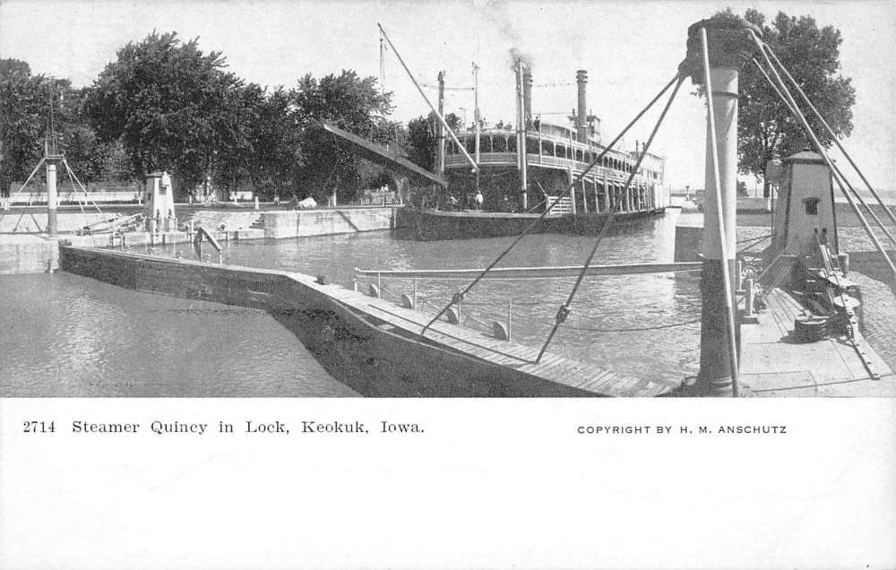 Keokuk Iowa Steamer Quincy In Lock Antique Postcard K59938