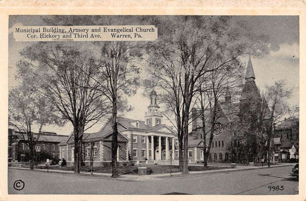 Warren Pennsylvania Municipal Bldg Street View Antique Postcard K59874