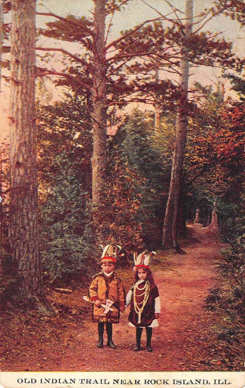 Rock Island Illinois Old Indian Trail Children Vintage Postcard K56729