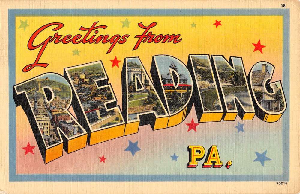 Reading Pennsylvania Large Letter Linen Antique Postcard K56684
