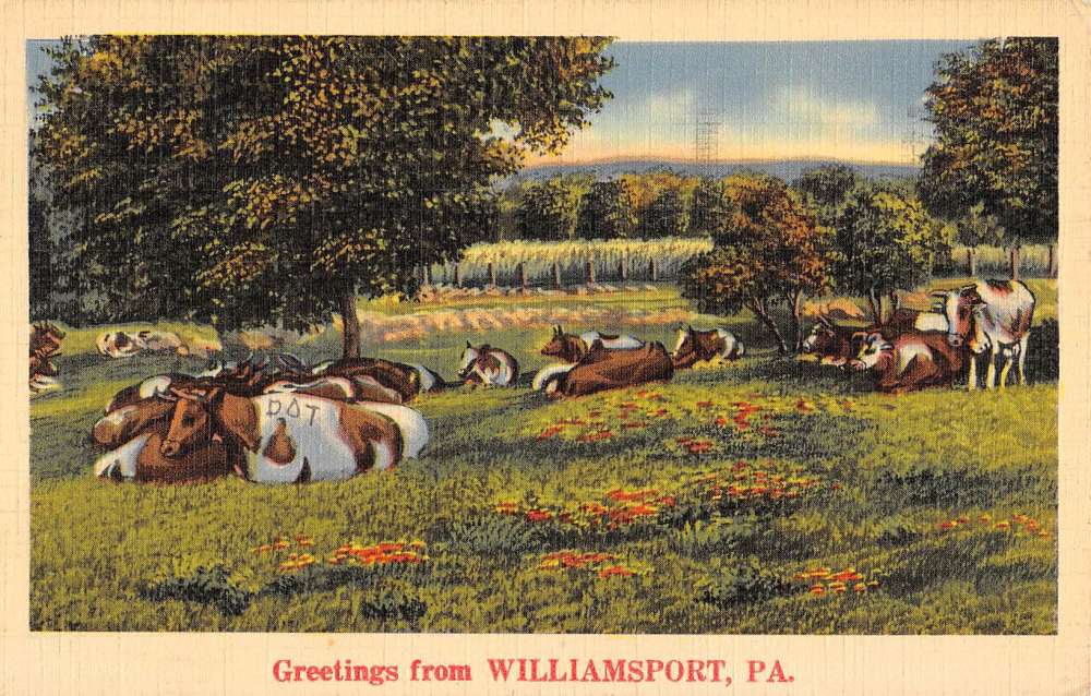 Williamsport Pennsylvania Cow Pasture Greetings Antique Postcard K55980