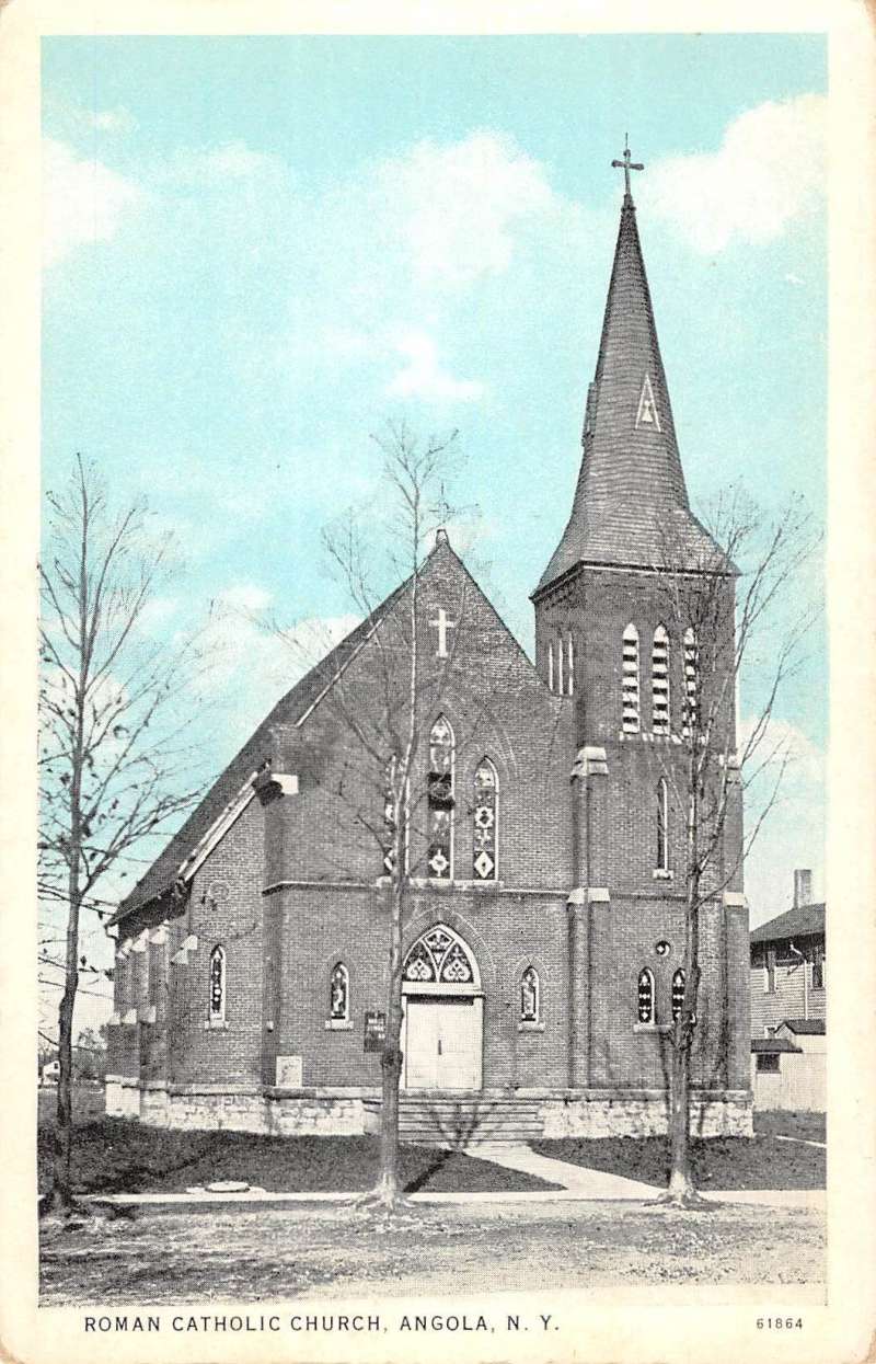 Angola New York Roman Catholic Church Street View Antique Postcard K55716