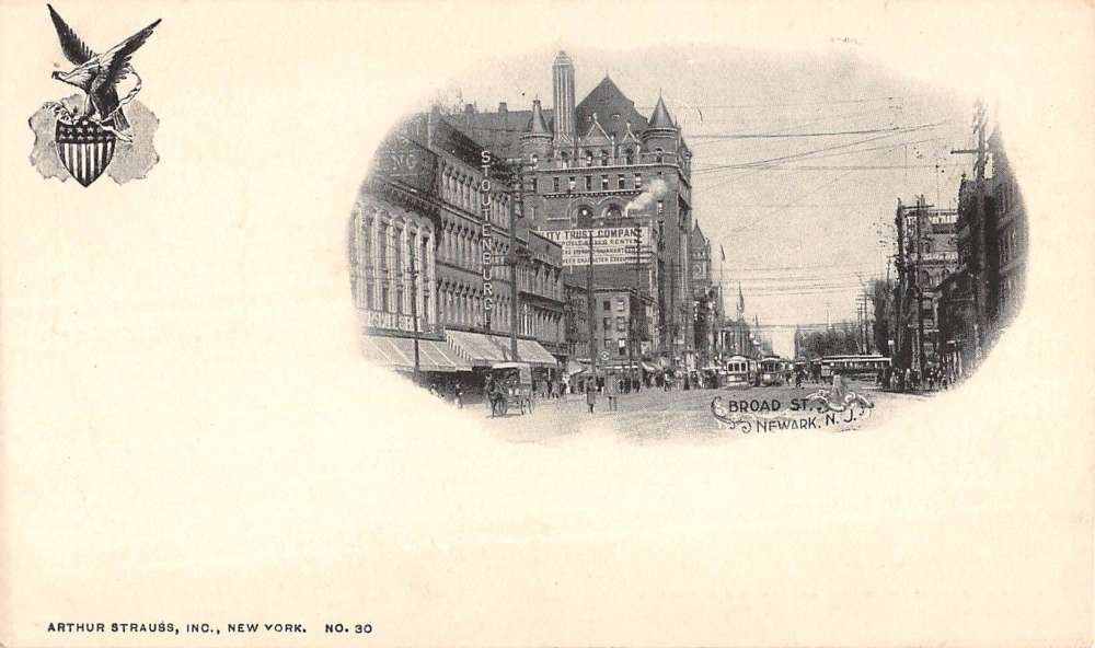 Newark New Jersey Broad Street Scene Historic Bldgs Antique Postcard K54930