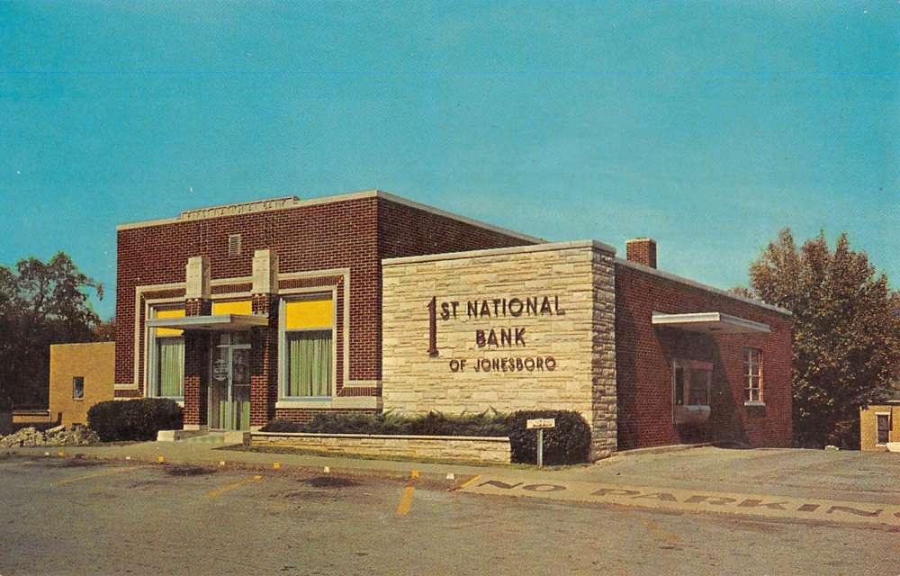 Jonesboro Illinois First National Bank Street View Vintage Postcard K55162
