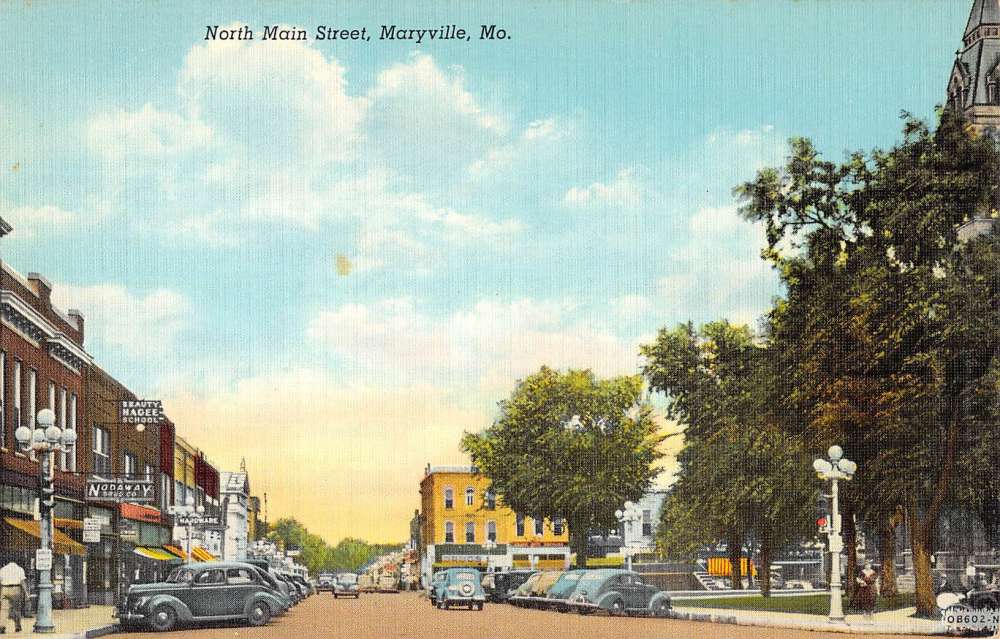 Maryville Missouri North Main Street Scene Antique Postcard K54714