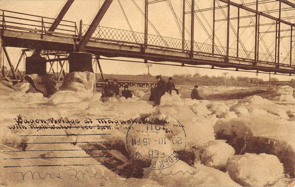 Elwood Iowa Wagon Bridge Snow Scene Antique Postcard K54719