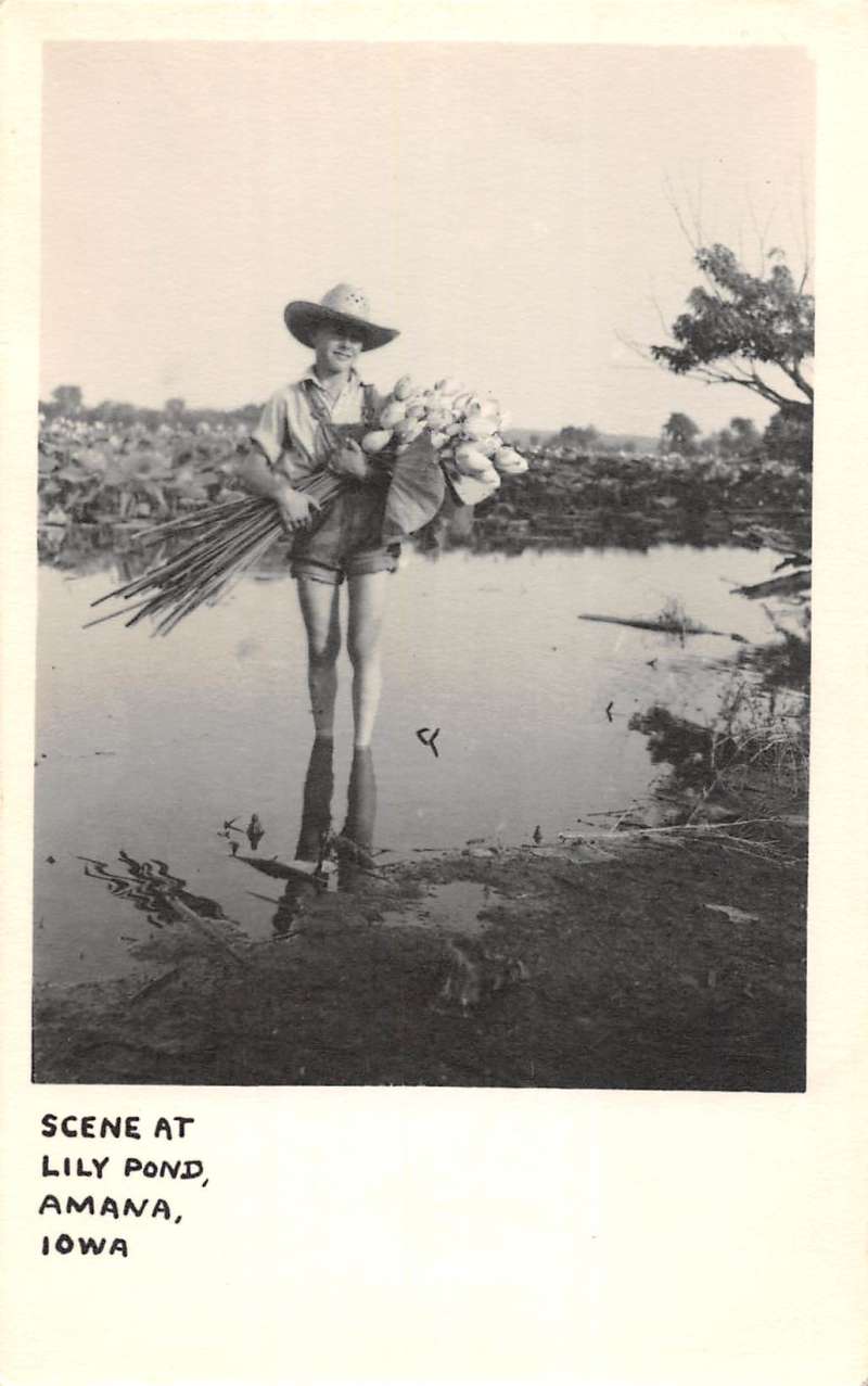 Amana Iowa Lily Pond Child Real Photo Antique Postcard K54722