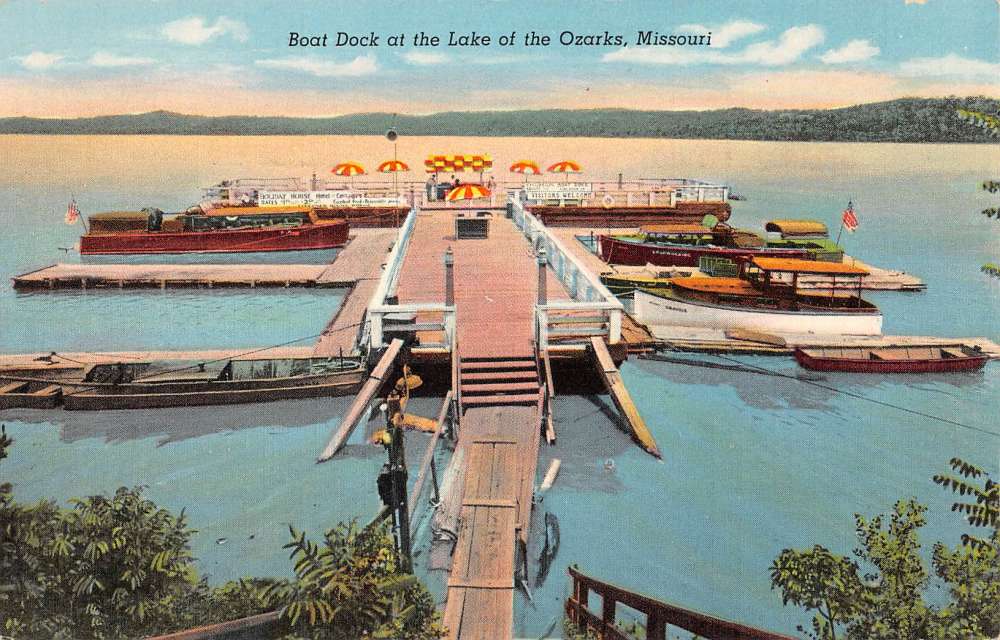Lake Of The Ozarks Missouri Boat Dock Birdseye View Antique Postcard K54736
