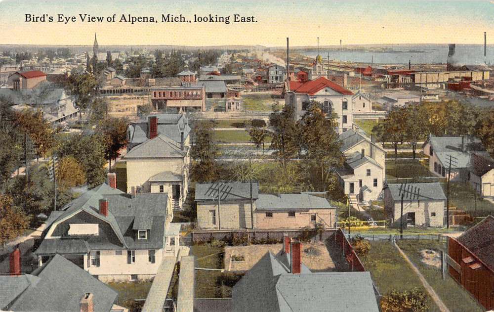 Alpena Michigan birds eye view looking east antique pc Y12343