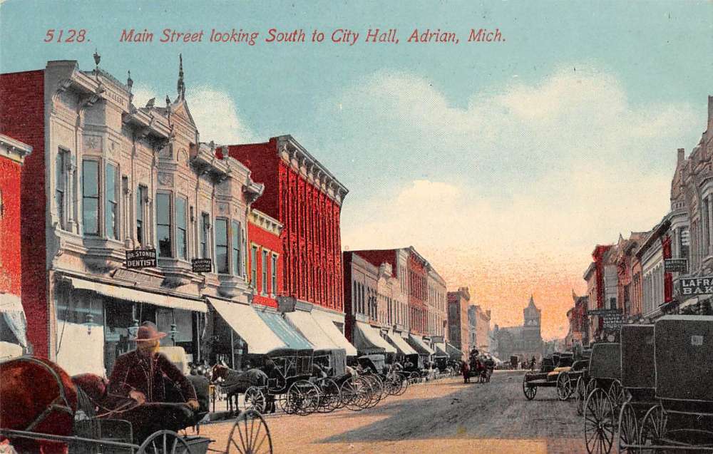 Adrian Michigan view of Main St south to City Hall antique pc Y12345