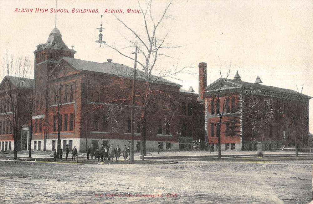 Albion Michigan High School Bldg Street View Antique Postcard K19287