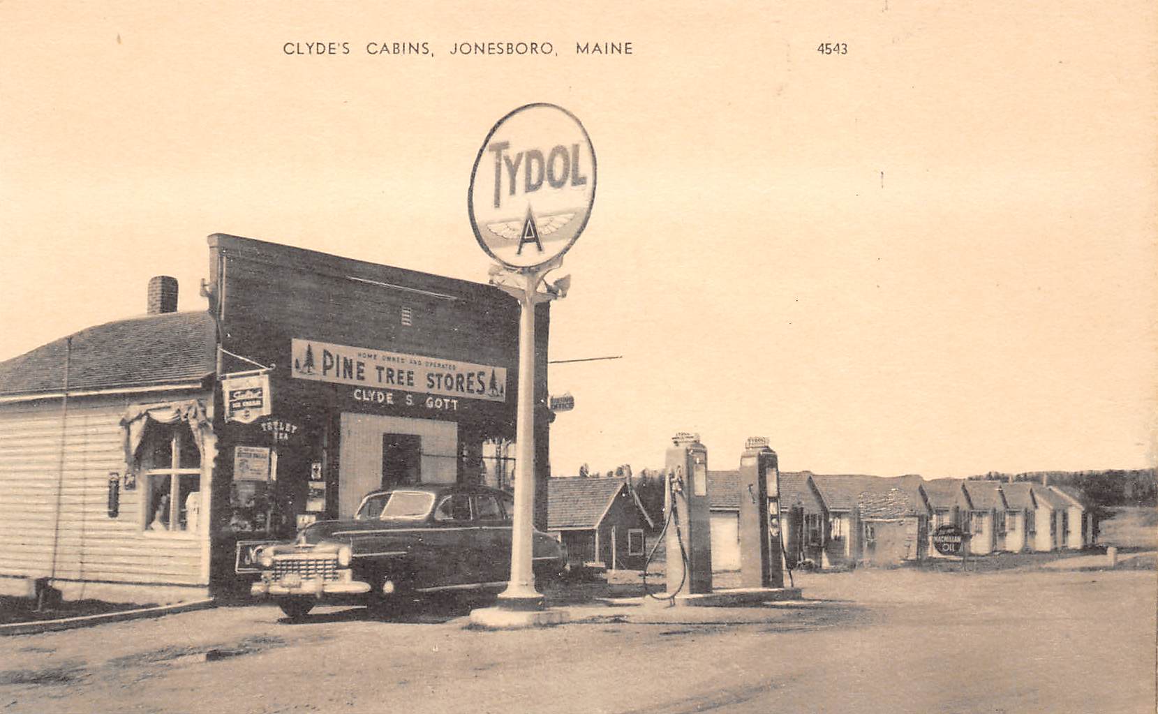 Jonesboro Maine Clyde’s Cabins, Tydol Gas Sign & Pumps, Vintage PC U11758