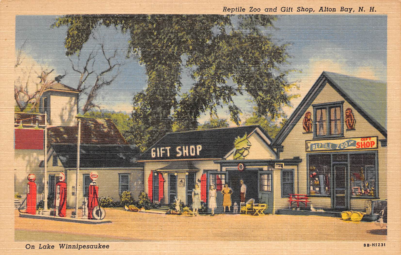 Alton Bay New Hampshire Reptile Zoo & Gift Shop, Gas Pumps Shown, PC U11761