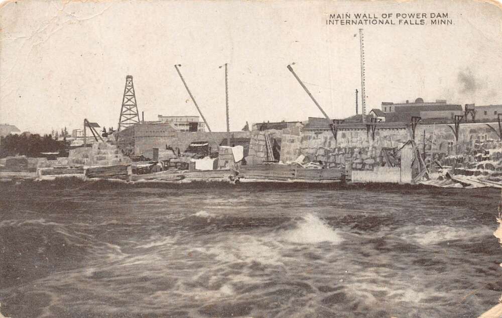 International Falls Minnesota Power Dam Main Wall Construction Postcard AA72626
