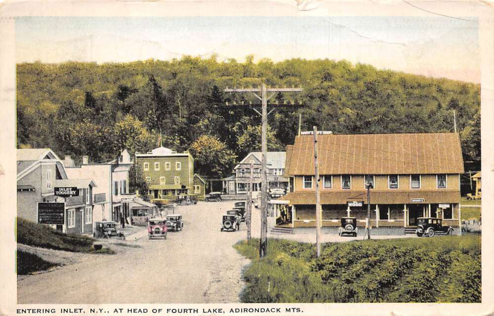 Inlet New York Entering Town Street Scene Adirondacks Postcard AA110066