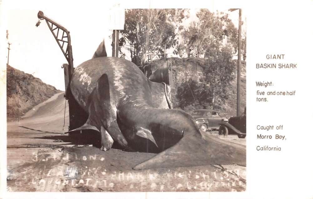 Morro Bay California Giant Baskin Shark Fishing Trophy Real Photo PC AA106404