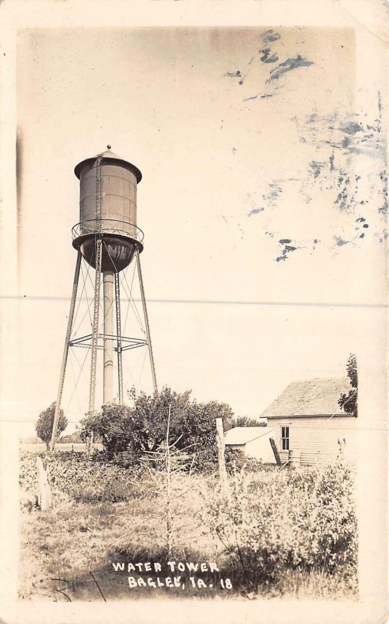 Bagley Iowa Water Tower Real Photo Vintage Postcard AA106409