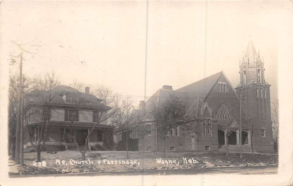 Wayne Nebraska ME Church and Parsonage Real Photo Postcard AA106410