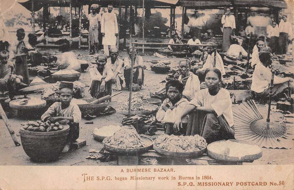 Burma Myanmar Bazaar Scene SPG Missionary Vintage Postcard AA106414