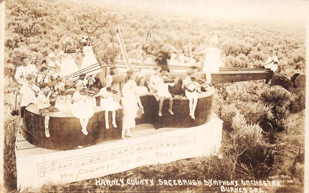 Burnes Oregon Sagebrush Orchestra Violin Parade Float Real Photo PC AA72693