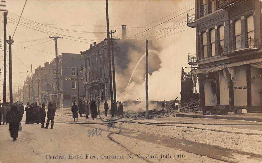 Oneonta New York Central Hotel Fire Disaster Real Photo Vintage Postcard AA72696