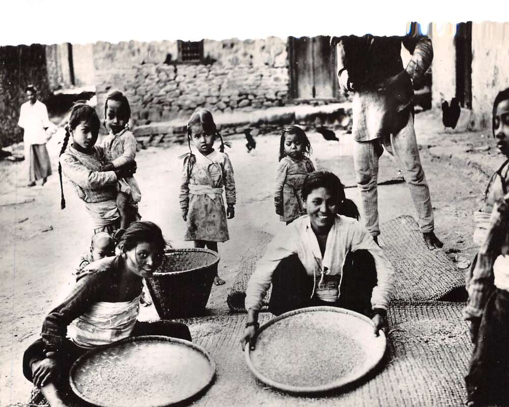 Kathmandou Nepal Sieving Rice Farming Scene Real Photo Vintage Postcard AA73062