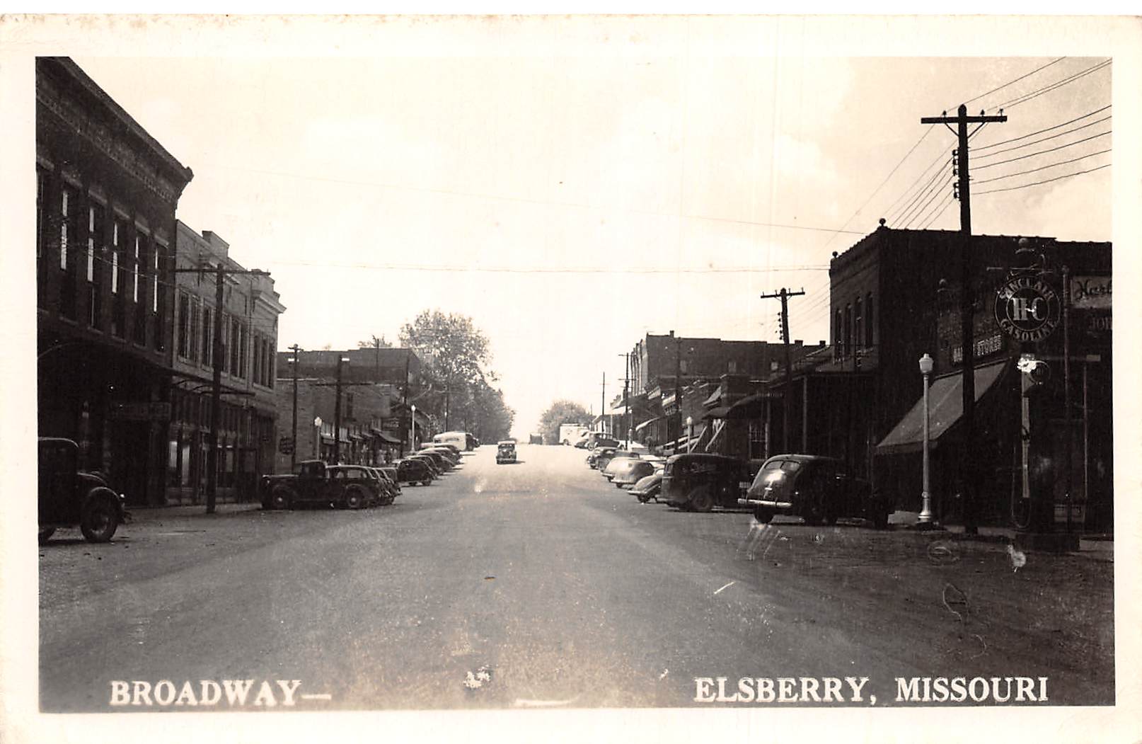 Elsberry Missouri Broadway, Sinclair Gasoline Sign, Real Photo Vintage PC U11735