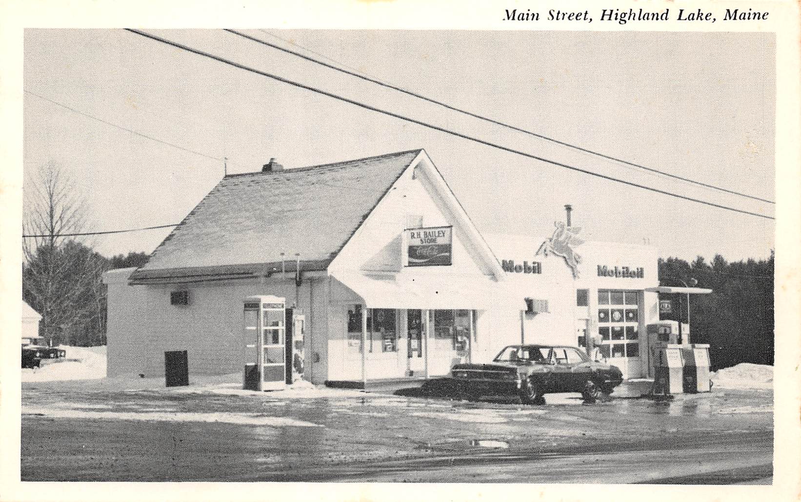 Highland Lake Maine Main St.,Coca Cola & Mobil Gas Signs, B/W Photo Print PC U11747