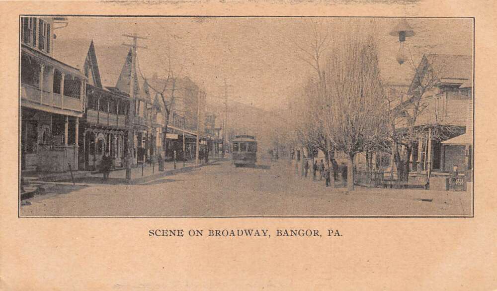 Bangor Pennsylvania Broadway Street Scene Trolley Vintage Postcard AA110048