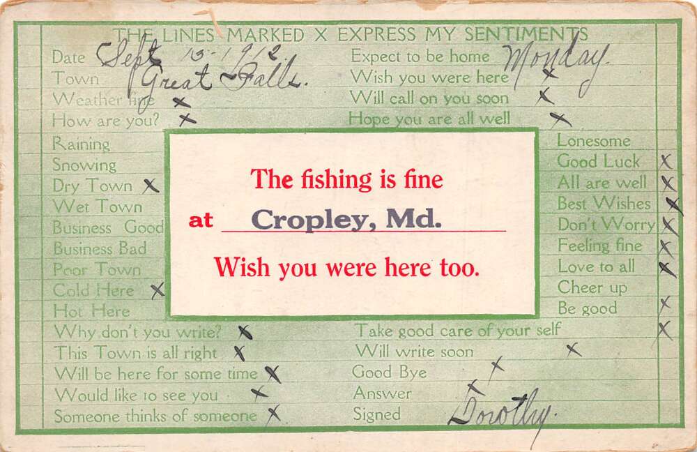 Cropley Maryland Fishing Greetings Correspondence Vintage Postcard AA109893