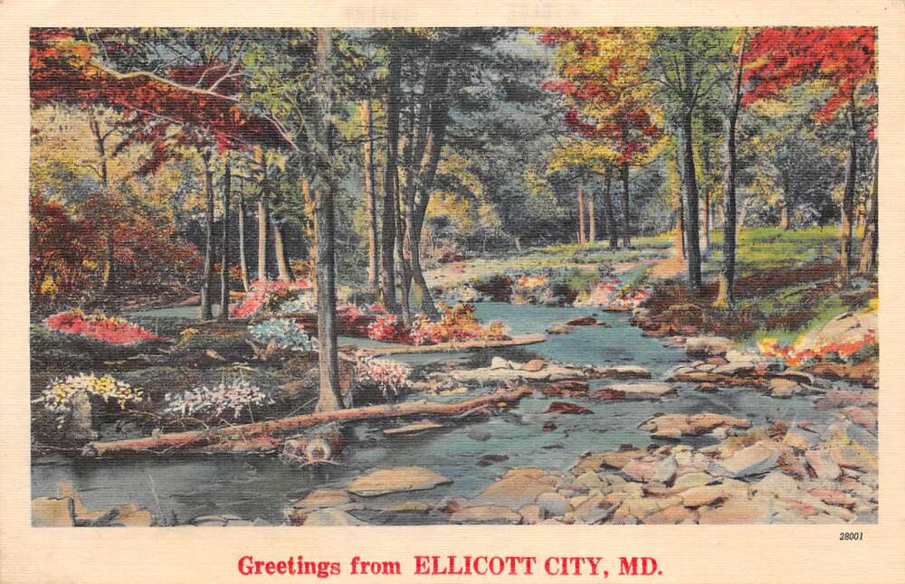 Ellicott City Maryland Greetings River Scenic View Linen Postcard AA109895