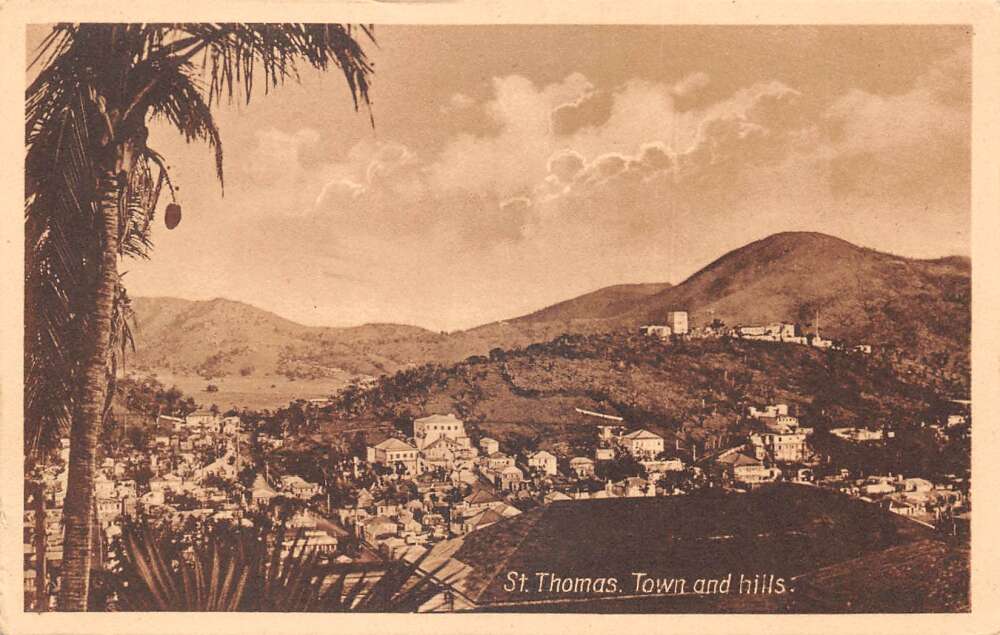 St Thomas Island Town and Hills Birds Eye View Vintage Postcard AA85397