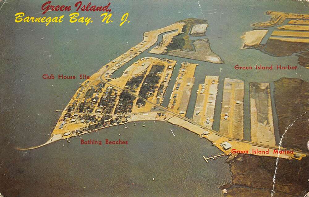 Barnegat Bay New Jersey Green Island Resort, Aerial, Chrome, Vintage PC U12559